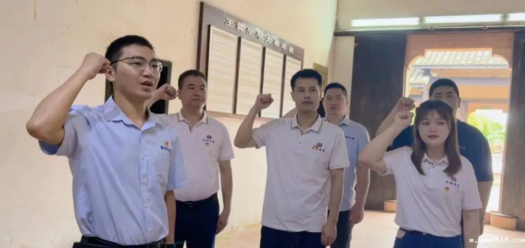 参观完后,为坚定入党初心,党员们面对王震将军画像,举起右拳,再次庄严宣誓,重温入党誓词,感受涌动初心。